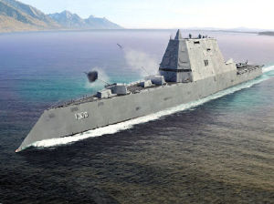 “朱姆沃爾特”號驅逐艦1991年海灣戰爭的硝煙還未散盡,美國海軍就已經開始研究21世紀水面作戰艦艇了。接下來連續公開發表的美海軍白皮書《由海向陸》、《前沿……由海向陸》等告訴世人,美國海軍戰略有了大的調整:它頭一回把支持近岸和陸上作戰列為自己的首要任務,要求海軍和海軍陸戰隊在任何情況下都必須能確保在瀕海區域通行無阻,能向岸上投送作戰力量,支持岸上的聯合機動作戰;強調建立海上遠征部隊,確保與陸、空軍聯合作戰;強調美海軍與海軍陸戰隊密切協作,組建陸海空聯合特遣隊以適應近海作戰和海上機動。20世紀90年代初期,除了航空母艦和海軍陸戰隊外,美國海軍對陸攻擊的重要武器就是二戰時的不死老兵──“依荷華”級(Iowa Class BB61-64)戰列艦,但是這批巨炮軍艦已經永久退役,美國為了取代其地位,並徹底強化陸攻能力,必須研發建造新的水面艦艇。