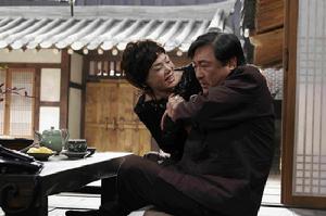 《無法阻擋的婚姻》絕然不同的兩個親家為了破壞這樁姻緣可謂費盡心思。金秀美和林彩茂,演技爐火純青沒得說,但導演為了笑果的爆炸程度也著實難為了片中的兩位前輩級的老演員。例如,剛在《光腳的基豐》里歷盡辛酸的金秀美以往在 《巴厘島的故事》、《主婦問題王先生》和《人生大賽》等影視作品中光鮮裝扮、盛氣凌人的歐巴桑形象深入人心,此次在片中可沒少吃苦頭,狼狽的模樣連連,例如夢見兒子要和“騙人的算命傢伙”的女兒額頭對著額頭,很親密嘴巴就快要碰到的時候,前面就是有萬丈深淵也飛奔過去,卻在二人中間跌倒了。為了拍出真實的效果,金秀美多次練習並且因此受了輕傷。很不想成為親家的兩人,為了棒打鴛鴦,惡毒的招數還不僅如此。他們使用了非常手段——激吻。 犧牲“色相”的兩人坦言從未演出過尺度這么大的鏡頭,面對記者“這樣的戲對於你們這樣年紀的人,是否很困難?”,敬業的兩個還不忘自我解嘲,“除了我老婆,奪走我甜蜜的唇,金秀美是第一人。我絕對不是討厭的感覺,既然你們記者來了,要不要我們重演一次?”“以前出過13張唱片專輯的林彩茂的一番話逗得在場的人大笑不已。而金秀美也感嘆:”能和丈夫以外的人如此激情的擁抱,感覺很幸福呢!”。連夏石鎮和柳真兩位年輕的演員,面對前輩的勇氣和敬業拱手稱服。
