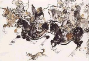 三、四兩句,可以不講對仗,詞人也用了偶句。偶句太多,容易顯得呆板;可是在這裡恰恰相反。兩個對仗極工、而又極其雄健的句子,突出地表現了雄壯的軍容,表現了將軍及士兵們高昂的戰鬥情緒。“八百里分麾下炙,五十弦翻塞外聲”:兵士們歡欣鼓舞,飽餐將軍分給的烤牛肉;軍中奏起振奮人心的戰鬥樂曲。牛肉一吃完,就排成整齊的隊伍。將軍神采奕奕,意氣昂揚,“沙場秋點兵”。這個“秋”字下得多好!正當“秋高馬壯”的時候,“點兵”出征,預示了戰無不勝的前景。