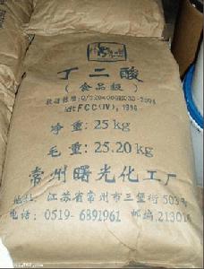 丁二酸丁二酸,又名琥珀酸,分子式為C4H6O4,為無色或白色、無嗅而具有酸味的固體。有兩種晶型(α-型和β-型),α-型在137℃以下穩定,而β-型在137℃以上穩定。在減壓下蒸餾可升華;常溫折射率(n20):1.405,氣相標準燃燒熱(焓)(kJ·mol-1):-1608.7,氣相標準聲稱熱(焓)(kJ·mol-1):-822.6,晶相相標準燃燒熱(焓)(kJ·mol-1):-1491.26,晶相標準聲稱熱(焓)(kJ·mol-1):-940.27,晶相標準熵(J·mol-1·K-1):167.32,晶相標準生成自由能(kJ·mol-1):-744.25,臨界溫度(ºC):557.85,臨界壓力(KPa):6.59,溶解性:1g產品溶於13ml冷水、1ml沸水、18.5ml乙醇、6.3ml甲醇、36ml丙酮、20ml甘油、113ml乙醚,易溶於熱水,幾乎不溶於苯、二硫化碳、四氯化碳和石油醚;閃點(ºC):>110