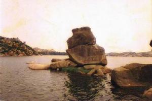 登上南岸風動石的山上,驚奇地發現石頭底部的中間是空著的,兩端只剩下方寸作為支撐點。這石頭佇立於山頂,歷經風霜雨露,看遍滄海桑田,卻依舊以驚艷的身姿屹立於湖畔,不得不讓人驚嘆大自然的鬼斧神工。