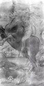 “畫中畫”里正戰鬥的中世紀騎士後在烏菲茲美術館的大力支持下,塞拉西尼通過用一架紅外攝像機對《三博士朝聖》進行拍攝掃描,以捕捉底稿上的數以千萬計的圖像。通過科學儀器的幫助,最終塞拉西尼重現了達·芬奇《三博士朝聖》的原作底稿,並且在底稿上發現了達·芬奇自己的素描自畫像,應該是達·芬奇29時的自畫像。在肉眼可見的《三博士朝聖》的畫作中,兩匹烈馬在廝打,但在後發現的達·芬奇原作底稿上,馬背上的騎士也清晰可見,雙方正在激烈的拼殺。由此塞拉西尼又有了更驚人的發現,那就是早在29歲時達·芬奇在創作《三博士朝聖》時,就已經為他在日後52歲時創作《安吉里之戰》做了準備。