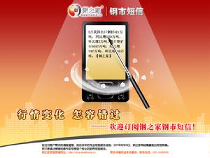 自鋼之家網站成立來,其專業的鋼材市場簡訊服務以迅捷、便利、簡單、準確等特色深受廣大客戶的喜愛。作為一家以“提供便利,創造價值”為經營宗旨的專業鋼鐵行業網站,多年來鋼之家一直在簡訊服務上傾聽來自客戶的聲音,不斷改進、創新。2011年,經過對客戶需求的調查整理,結合多年的專業簡訊服務經驗,鋼之家網站隆重推出簡訊頻道。在簡訊