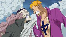 沒有結果,飛向處刑台救艾斯時被卡普一拳打落,但並未受明顯傷害,隨後又與黃猿進行對抗。