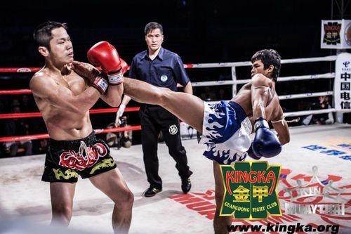 世界泰拳王金腰帶爭霸賽在女子54KG級比賽中,泰國選手瓦緹尼·沙蘭布魯斯以犀利的腿法和靈活的步伐擊敗了身高略占優勢的中國香港選手趙凱茵。在60KG級的比賽中,泰國的侖披尼冠軍素木憑藉豐富的賽場經驗和出色的技術在第二局中KO了中國選手廖道軍。在62KG級中國選手唐成浩和泰國那塔蓬.宏坡的終極對決,雙方勢均力敵。唐成浩在有效抵擋泰國選手猛烈進攻的同時,頻頻用重拳還予顏色,最終三名裁判一致判決唐成浩勝出。在63.5KG級的比賽中,泰國的披賽·拉姆斯以兇狠的腿法,踢到中華台北選手范仲傑的眼部,致其受傷而不能繼續參加比賽,最終披賽·拉姆斯獲勝。在70KG級的比賽中,中國香港選手方俊銘多次利用肘部擊中對方頭部從而KO中華台北選手劉修本。