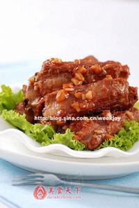 肋排500g、大蒜一頭、橄欖油1湯匙、李錦記排骨醬3湯匙、蚝油2湯匙、黑胡椒碎1茶匙、鹽1茶匙、糖1/2茶匙。