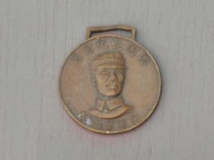 孤軍營紀念章紀念章為銅製,正面中央為謝晉元半身像,頭戴軍帽,身穿軍服,表情莊嚴肅穆,目光眺望遠方。上面有“謝團長紀念像”六字,下面有“孤軍營敬制”字樣。1941年謝晉元遇害,八百壯士無限悲痛,一致決議鑄造“謝團長紀念像”,每人胸前佩戴一枚,以示悼念。