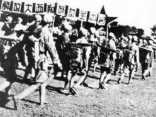 奇襲蒙自機場1950年3月,根據云南軍區命令,邊縱獨立第二團和第一支隊整編,組編為武定軍分區。分區司令員林傑、政治委員梁家、副司令員孫太甲、參謀長李鴻基、政治部主任李曉儂、後勤處長楊林,下轄兩個團。第二支隊奉命整編,大批幹部轉業到地方工作,留隊人員編入宜良軍分區機關和新一團。撤銷羅盤指揮部和滇桂黔邊縱隊第三支隊,所屬部隊分別編入雲南、貴州、廣西省軍區所屬軍分區。第六支隊主力及所屬地方團隊也先後精減整編入曲靖軍分區、昭通警備區及專署公安處和各縣公安隊。3月8日,第八支隊的三十六團、三十七團、三十八團、警衛營及暫編總隊合編為楚雄軍分區主力團。同時抽調730餘名幹部戰士,組建縣公安隊,移交地方公安機關領導。編餘人員,有些轉業地方政府工作,多數復員還鄉參加經濟建設。江支隊各主力團、獨立營、獨立大隊,奉廣西軍區命令進行整編。第三團、第七十四團整編為廣西軍區獨立第十團。第七十五團一營整編入廣西軍區獨立第九團,一營編入獨立第十團。原粵桂邊縱隊第三支隊第二十三團,以及左江各縣獨立營、獨立大隊,也先後編入龍州軍分區下屬各縣大隊,部分指戰員轉業地方,成為地方黨政骨幹。