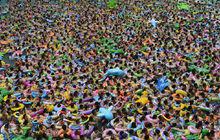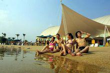 四川遂寧萬人游泳2013年7月28日,四川省遂寧市,中國死海景區,大量遊客在衝浪池內享受波浪衝來的樂趣。由於從7月中旬以來,四川盆地持續高溫,當地當日氣溫高達38攝氏度,桑拿天氣令人悶熱不堪。景區內單日就達到一萬五千餘名遊客,眾多的遊客使場面甚為壯觀,擠爆景區。有網友調侃稱,下餃子都沒這么擠。