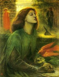 羅賽蒂的愛妻1862年去世,這使他的創作越來越帶有憂傷的情調。他把自己不幸遭遇畫成一幅象徵性作品,題名《比阿特麗克斯》,在畫中,畫家將自己亡妻西達爾比作比阿特麗克斯,