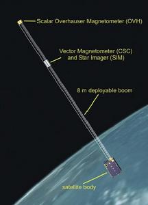 一個Overhauser磁力儀提供極其精確的測量強度的磁場。磁強計的Overhauser位於年底的8米長的繁榮,為了儘量減少干擾衛星的電力系統。