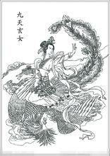 西王母嘉玄女之功,封神,是為九天玄女,妙相莊嚴,頭綰九龍飛鳳髻,身穿金縷絳綃衣。藍田玉帶曳長裾,白玉圭璋擎彩袖。左右兩位青衣女童,一個執笏捧圭,一個執旌擎扇。乘丹鳳御景雲,服九色彩翠之衣。或曰:玄女即壬女也。金母生壬水,壬為九,遂稱九天玄女,壬色,即水色,即天色。而九天玄女能配皇天之德,行皇后之功,功德大焉!天玄地黃,龍戰於野,其血玄黃。天有九層,而玄女處九霄,亦至尊極矣!