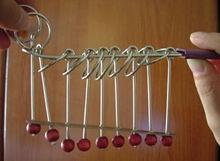 2. 把第n個環從橫桿下面穿上去,拉到前面後套進橫桿;(裝上第n環)