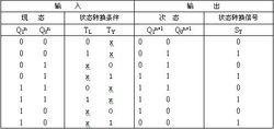 交通燈以上4種工作狀態的轉換是由控制器器進行控制的。設控制器的四種狀態編碼為00、01、11、10,並分別用S0、S1、S3、S2表示,則控制器的工作狀態及功能如表12、1所示,控制器應送出甲、乙車道紅、黃、綠燈的控制信號。為簡便起見,把燈的代號和燈的驅動信號合二為一,並作如下規定:
