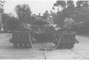 提高了裝甲防護性的MK5坦克,裝1門105mm火炮,車後加裝1個附加燃料箱。
