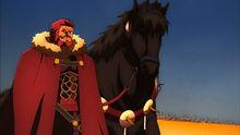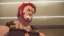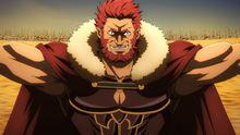 王之軍勢 但所展開的王之軍勢被英雄王的天地乖離開闢之星所擊破;在命令韋伯“活下去”後便騎著愛馬衝上去挑戰英雄王。但當劍快斬到英雄王時被天之鎖鎖住,後被乖離劍貫穿胸膛。