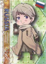 不發一言卻能帶來巨大壓迫感的青年。喜愛伏特加,不管做什麼都要用到伏特加,連燃料也是,但其實伏特加是波/蘭發源的。生活在西/伯/利/亞的廣袤土地上。因為每年都會被冬將軍侵襲所以討厭雪,但每次遇到戰爭的時候,冬將軍卻會成為他最好的幫手。過去是個常被欽/察/汗/國欺負的莫/斯/科/公/國孩子.。