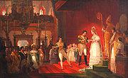 巴西皇帝佩德羅一世的加冕若昂六世回國後,葡萄牙的第一屆立憲議會企圖取消若昂六世受給巴西的各種特權,使巴西重新陷入殖民地的境地。巴西人民早已習慣有一個自己的國王和政府,這種做法進一步刺激了巴西人民要有自己的國王和政府的情緒。巴西不能接受對其特權的取消和再次淪為殖民地。佩德羅決定留下來反對葡政府的這項決 議,若昂六世也默許了兒子的做法。1821年12月,葡議會以完成政治教育為由,敦促其回國,並規定巴西各省直接受里斯本管轄。在巴西獨立派的推動下,佩德羅拒絕了葡議會的命令,建立了以若澤·博尼法西奧·德·安德拉達(José Bonifacio de Andrada e Silva)為首的新政府,並與1822年5月自立為“巴西永久的保護者”。葡議會因此廢黜了其巴西攝政王的職務。1822年9月7日,剛到達聖保羅的佩德羅獲悉了此決議,於是在依皮朗加河畔拔劍宣誓“ 不獨立,毋寧死!”(Independência ou Morte!),正式宣布了巴西的獨立。當天他創作了《啊祖國,啊皇帝,啊人民》的歌曲,並親自在當晚聖保羅的愛國集會上演唱,由合唱隊伴唱,這首歌成為巴西的第一首國歌。10月12日佩德羅稱巴西皇帝佩德羅一世,並於12月1日舉行了加冕儀式。
