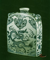 元代景德鎮窯青花龍紋扁方瓶,為元代 ,高36.8厘米,【收藏機構】:英國國立維多利亞工藝博物院藏。