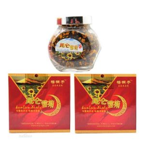 2.崑崙雪菊與一般菊花茶相比,其美妙在於它濃郁的香氣,浪漫的色彩,甘醇的味道;崑崙雪菊香氣撲鼻,菊香味濃郁,聞之讓人身心清爽;崑崙雪菊的茶湯,如陳年普洱或紅酒般色澤紅艷,菊湯純淨少或無細沙,並且不因時間長久而改變,而一般菊花茶在沸水浸泡之後很快變淡至無色。最後是崑崙雪菊的味道,雪菊輕啜入口,有清而不濁,和而不猛之感,唇齒留香,沁人心脾。
