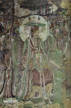 壁畫道教分南北兩派,南派為舊教,稱為正一派,北派即王重陽創立的全真教。王重陽修道十一年,主要在山東寧海一帶傳教,共收入門弟子七位,號封“全真七子”。分別為長春子邱處機、丹陽子馬鈺、清真散人孫不二、長真子譚處機、長生子劉處玄、玉陽子王處一、廣寧子郝大通。其時以丘處機為首的全真派在元朝倍受恩典,從而使道教也倍受尊崇,道教曾被封為國教。因而,金元年間,新道教全真教備受推崇,道觀遍及大江南北。
