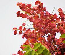 | 復羽葉欒樹 | 復羽葉欒樹(Koelreuteria bipinnata)分布於中國中南、西南部,落葉喬木,高達20m,花黃色,果紫紅色,二回羽狀複葉。8月開花,蒴果大,秋果呈紅色,觀賞效果佳。 |