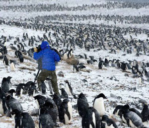 長相滑稽的阿德雷企鵝準時回到了營地,這個營地里有大約50萬隻企鵝。毛絨絨的小企鵝需要不停的餵食和保護,因為小偷般的賊鷗就在上空盤旋。一旦小企鵝被搶,空中就會立刻上演一場爭奪混戰。