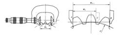 分度圓測量分度圓弦齒厚需專用測量儀器(圖6),且測量時必須以齒頂圓為基準,測量結果無疑受到齒頂圓精度的影響。因此對於>10 mm的齒輪,常常優先採用測量公法線長度的方法來檢測齒輪的加工精度。如圖7所示,使用千分尺(或精密遊標卡尺)的兩個卡腳跨過齒輪個齒,與齒廓相切於A、B兩點,兩切點間的距離AB(或AC)稱為公法線長度,用表示,單位為。