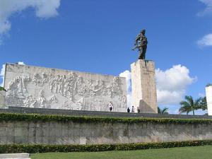 聖克拉拉位於古巴中部,是格瓦拉曾經戰鬥過的英雄城市。1958年古巴革命勝利前夕,格瓦拉奉卡斯楚之命,在聖克拉拉所在的比亞克拉拉省指揮一支游擊隊。在著名的聖克拉拉戰役中,格瓦拉指揮的游擊隊成功擊潰政府軍開赴東部的援軍,並乘勝向哈瓦那挺進,為卡斯楚指揮的游擊隊包圍、擊敗東部聖地亞哥的守軍起到了至關重要的作用。古巴政府和人民為紀念格瓦拉的傑出貢獻,1988年在聖克拉拉動工修建格瓦拉廣場,並於1994年竣工。廣場上除了攜槍凝視遠方的格瓦拉巨型雕塑外,底座上還有多幅關於格瓦拉的浮雕,其中還有格瓦拉離開古巴時寫給卡斯楚的信。紀念堂里後來還增設了靈堂,用來安放格瓦拉和他遇難戰友的遺骨。