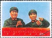 第一枚郵票圖案為毛主席和林彪在天安門城樓上。