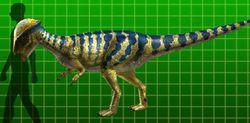 劍角龍復原圖儘管個子不大,劍角龍可不是個好惹的傢伙。這種兩足行走的食草動物來自一個不同尋常的恐龍家族:腫頭龍家族共同的特徵是都長有一塊又厚又圓的頭蓋骨。它呈半圓形,由許多小骨塊組成,蓋住了它的眼睛和後脖頸。這塊頭骨在劍角龍剛出生的時候並不是很厚,隨著小龍的逐漸長大,它也越長越厚。某些專家相信他們分別找到了雄劍角龍的頭蓋骨和雌龍的化石。他們發現有些劍角龍的頭蓋骨比另一些的厚,這些較厚的骨頭可能是雄劍角龍身上的。一隻雄劍角龍的頭蓋骨可達6厘米——足足頂得上半塊磚了。劍角龍五倍於人頭骨厚的頭蓋骨還是它對付兇猛敵人的有力武器。一隻劍角龍自衛時的樣子可真是嚇人!大多數攻擊者都經不起這么猛的一撞,它們不是斷根肋骨就是折條腿。