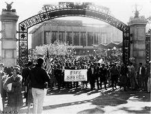 20世紀60年代,加州大學伯克利分校在越南戰爭期間由於其學生對於美國政府的抗議而變得全球知名。而1964年在伯克利發起的“言論自由運動 (Free Speech Movement)”更是改變了幾代人對政治和道德的看法,伯克利成為了當時美國社會變革的策源地之一 。後來為了紀念此次運動,伯克利校園內還建立了“言論自由運動咖啡廳(Free Speech Movement Cafe)” 。