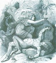 於是經過震撼宇宙的激戰之後,好不容易才把巨人伊米爾殺死,奧丁用長槍刺穿了伊米爾的胸部,鮮血噴涌而出變成一片血海,巨人族都在血海中溺死了。
