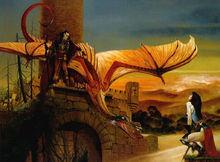 一隻松鼠拉塔托斯克(Ratatosk)則跳上跳下地挑撥蒼鷹和黑龍。