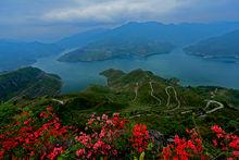 千峽湖[浙江省第二大人工湖] 千峽湖呈狹長型,寬窄相間,小型島嶼以及眾多半島縱橫交錯,使水域蜿蜒曲折,湖光山色交相輝映。高山湖泊,落差較大,山脊線起伏有致,多石柱、峰叢、峭壁以及像石等。穿行在崇山峻岭之間,峽谷、湖泊、絕壁、平台等景色相互切換,湖光山色美不勝收。
