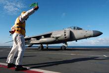 1998年夏,英國皇家海軍2艘航母參加了北約“堅定決心”聯合演習。卓越號搭載1個由鷂式攻擊機和海鷂式戰鬥機組成的混編大隊,“無敵”號航母則搭載1個海陸軍混合直升機大隊和700名海軍陸戰隊員,從而全面實現了“由海向陸”的作戰概念。