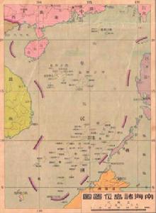 1947年,中國民國內政部方域司印製了《南海諸島位置圖》。該圖在南海海域中標有東沙群島、西沙群島、中沙群島和南沙群島,並在其四周畫有U形斷續線,線的最南端標在北緯4°左右。