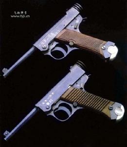 北支一九式手槍北支十九式手槍並不是完全複製南部十四式手槍,該槍有很多改進之處。最引人注目的改動是,握把和槍身與扳機護圈形成了一體化的型式;而南部十四年式的扳機護圈,其上端兼有固定槍機的作用,因此,其扳機護圈向握把前部拉動時,可向下方分離。同時,該槍槍身右側面設計了與德國盧格手槍極相似的獨立部件-分解桿。南部十四式手槍扳機纖細精美,而北支十九式的扳機較寬。另外,南部十四式手槍的手動保險鈕設在扳機護圈左上方,開啟極為不便;北支十九式手槍保險鈕則被移到了握把後端的左上方,右手握槍時拇指可自如開啟,人機工程大為提高。除以上不同外,該槍整體外觀以及握把、彈匣的設計等都與南部十四式手槍相似,是典型的南部十四年式的仿型槍。