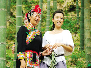 7月9日,中央電視台《印象中國筍竹城·魅力建甌》大型演唱會欄目組到建甌市房道鎮畲鄉吳大元村“金三角”萬畝竹林拍攝外景。圖為中央電視台節目主持人張蕾在拍攝現場。