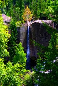 溫泉瀑布 由神鐘山再東行約八公里,在方圓幾百米內有四個溫泉,當地人稱為季蘭德溫泉和三神泉。據說季蘭德溫泉可治療關節炎、腰腿痛。在季蘭德溫泉附近,還分布著胃泉、降壓泉和不飽泉三個神奇的泉眼。在溫泉的東部,一屢青泉從一塊高10多米的巨大山石上飛流而下,這就是著名的溫泉瀑布。