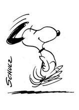 快樂舞蹈在初期,史努比只是被塑造成一隻普通小狗,還不具備強烈的擬人特性。在1956年1月9日的漫畫中,史努比第一次用後腿站起來 ;同年稍後,它還首度表演自己編制的“快樂舞蹈”。從此,它直立行走的形象徹底改變了《花生漫畫》的表現風格,而史努比也越來越了解複雜的日常生活 。