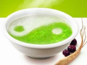 製法:山藥切片,苡米水泡開,佩蘭葉布包泡開,加入糯米、冷水燒開,再加入菱角粉和浙貝粉調勻,煲粥。