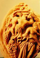 材質:為秦皇島地區盛產的桃核 雕刻技法:紋理浮雕。即利用桃核的天然紋理,隨形雕刻,狀物刻形。