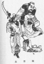 說關羽在千里走單騎到達古城之前,名為收了一員大將:周倉。並說是關西(泛指函谷關或潼關以西地區)人,“兩臂有千斤之力”、“形容甚偉”。原在黃巾軍張寶部下為將,張寶死後,嘯聚山林。久慕關羽盛名,因而投歸於帳下。