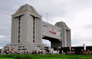 呼倫貝爾滿洲里國門景區中俄邊境國門建成於1989年6月25日。建築面積714.5平方米,高12.8米,寬24.45米,外表用兩千多塊0.5平方米的青灰色花崗岩石板鑲嵌,門中間的國徽直徑長達1.8米,上面有“中華人民共和國”七個鮮紅的大字。是中俄邊境第四代國門。由於國門的重要地理位置,很多黨和國家領導人都曾來到這裡留下寶貴的足跡。毛澤東主席一生只出過一次國,就是由這裡前往蘇聯的。1990年9月24日,江澤民總書記來到這裡,為駐紮在國門的邊檢二中隊的官兵們寫下“國門衛士”幾個大字。