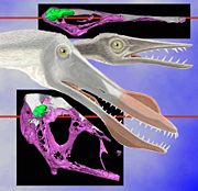 在2003年,勞倫斯·威特默(Lawrence Witmer)等科學家利用X射線斷層成像研究數種翼龍類的腦殼,重建出這幾種翼龍類在不同動作時的頭部姿態。他們發現喙嘴翼龍的內耳結構有助於平衡感,可使頭部可以保持在水平狀態。而翼手龍類(古魔翼龍為例)的頭部不論在飛行、地面行動時,頭部都保持在往下傾斜的狀態。