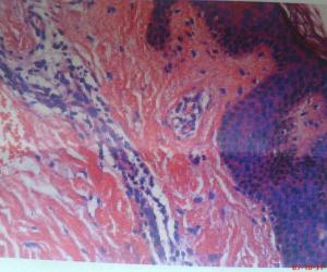 (2)系統性紅斑狼瘡:具有多統損害特徵容易與本病相混淆,但其皮膚特徵和組織學改變與本病有顯著不同。再者,免疫學檢查,抗核抗體均陽性。若發現有脂膜炎的特徵性皮損,則表明為系統性紅斑狼瘡與本病相重疊。