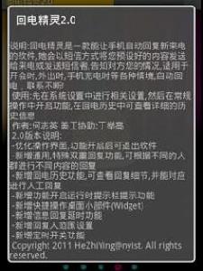 回電精靈是移動套用商場MobileMarket的一款優秀套用,總下載已突破10萬,用戶好評率為100%,是一款深受廣大用戶喜愛的套用。