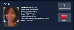 | 單打冠軍排名: | 2014年2月1日-5月26日 | WTA單打冠軍排名第1位 |