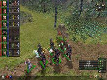 遊戲的分界面清晰易懂,視角變換非常靈活。遊戲是以第三人稱透視法來精心刻畫的,通過滑鼠按鈕,你可以任意放大或者縮小。螢幕上有簡單指針指示,利用這些指示,你將能夠對圖像進行各種旋轉角度。總之,將分界面調整到適合你的需要為止。遺憾的是,有些角色在細節上的製作還不是很成功。在這裡,你控制的每一個角色都擁有一套作戰規則。例如你可以讓它們站立不動,或者四處移動,或者不斷進攻,或者任意攻擊等。即使你控制8個角色同時應戰,作戰起來也會得心應手。不過倘若你喜歡的話,單個控制它們也可以作戰。